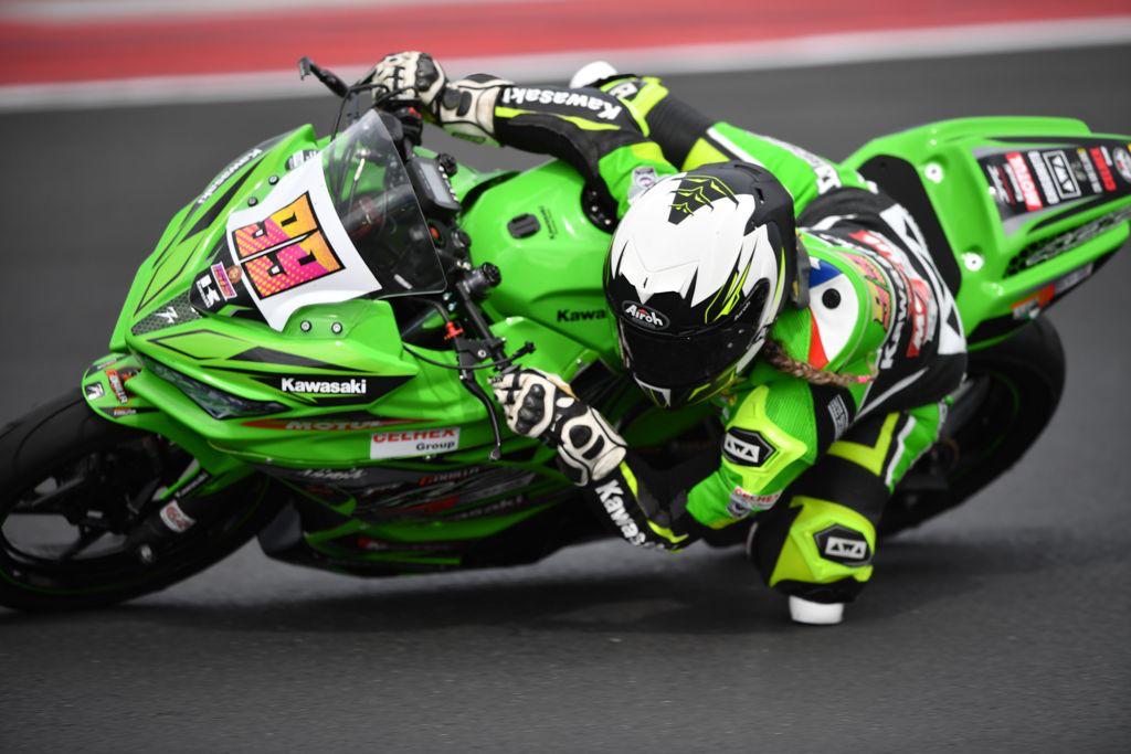La chilena terminó cuarta en una competencia muy disputada hasta la última vuelta, separada por una distancia apenas perceptible de la competidora local Sabrina Della Manna, usuaria también de una Kawasaki.