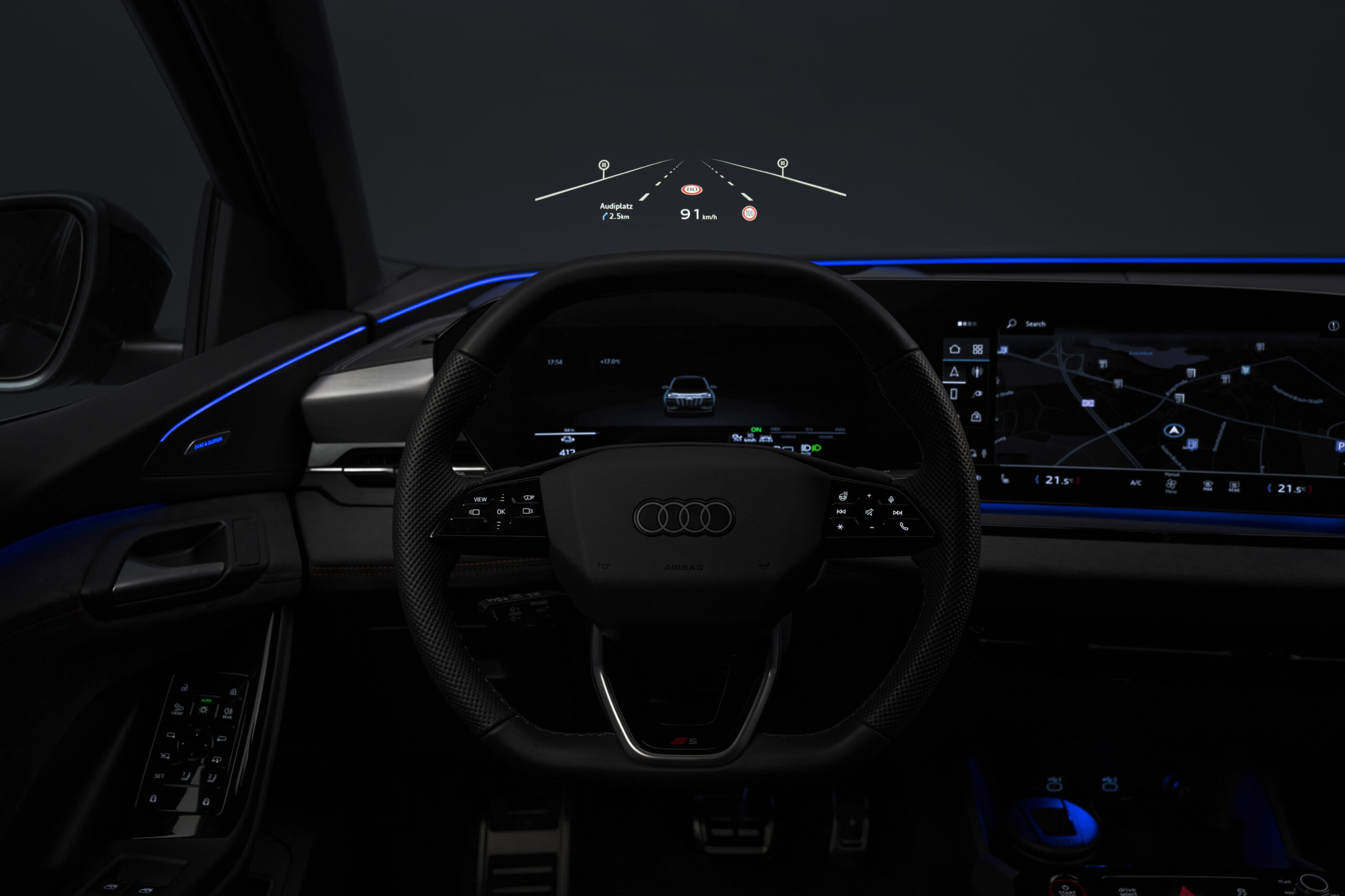 La zona del conductor está diseñada como una curva y la pantalla, con su forma cóncava, está orientada hacia el conductor. La forma de la pantalla curvada también recuerda al marco único característico de Audi. Asimismo, las variantes Sport adicionan una pantalla touch de 10,9” para el acompañante donde puede controlar distintas funciones de infoentretenimiento de manera individual.