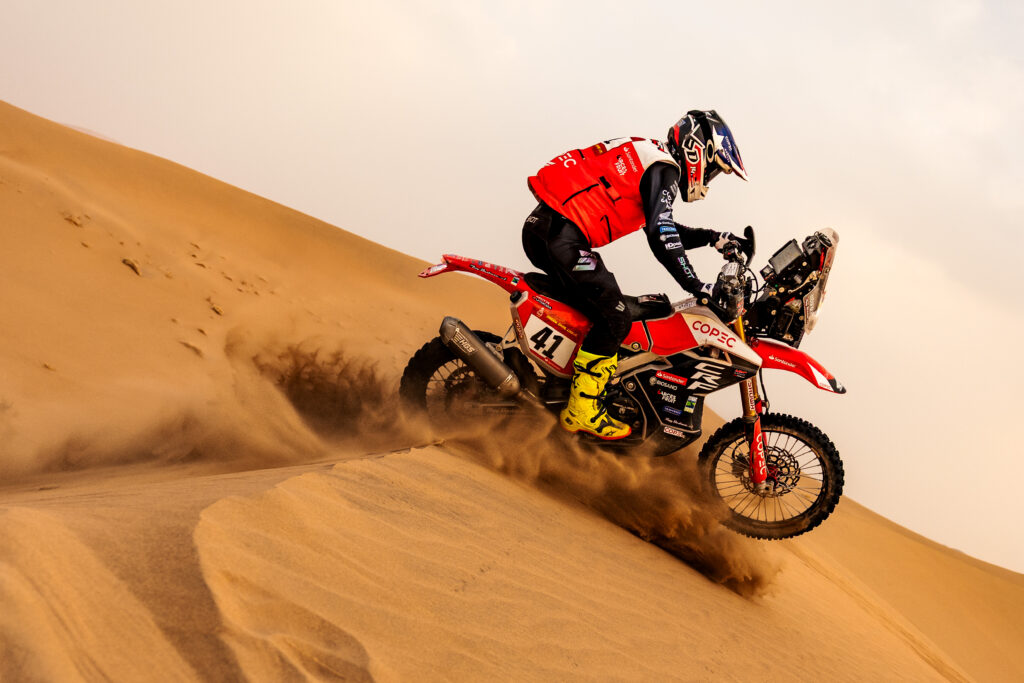 Ruy Barbosa abandona una carrera que hasta el momento lo metía en una clasificación general histórica para un debutante chileno en la categoría de motos y suelta también el tercer lugar del podio en Rally2, con un hombro dislocado y a sólo 3 etapas de terminar.