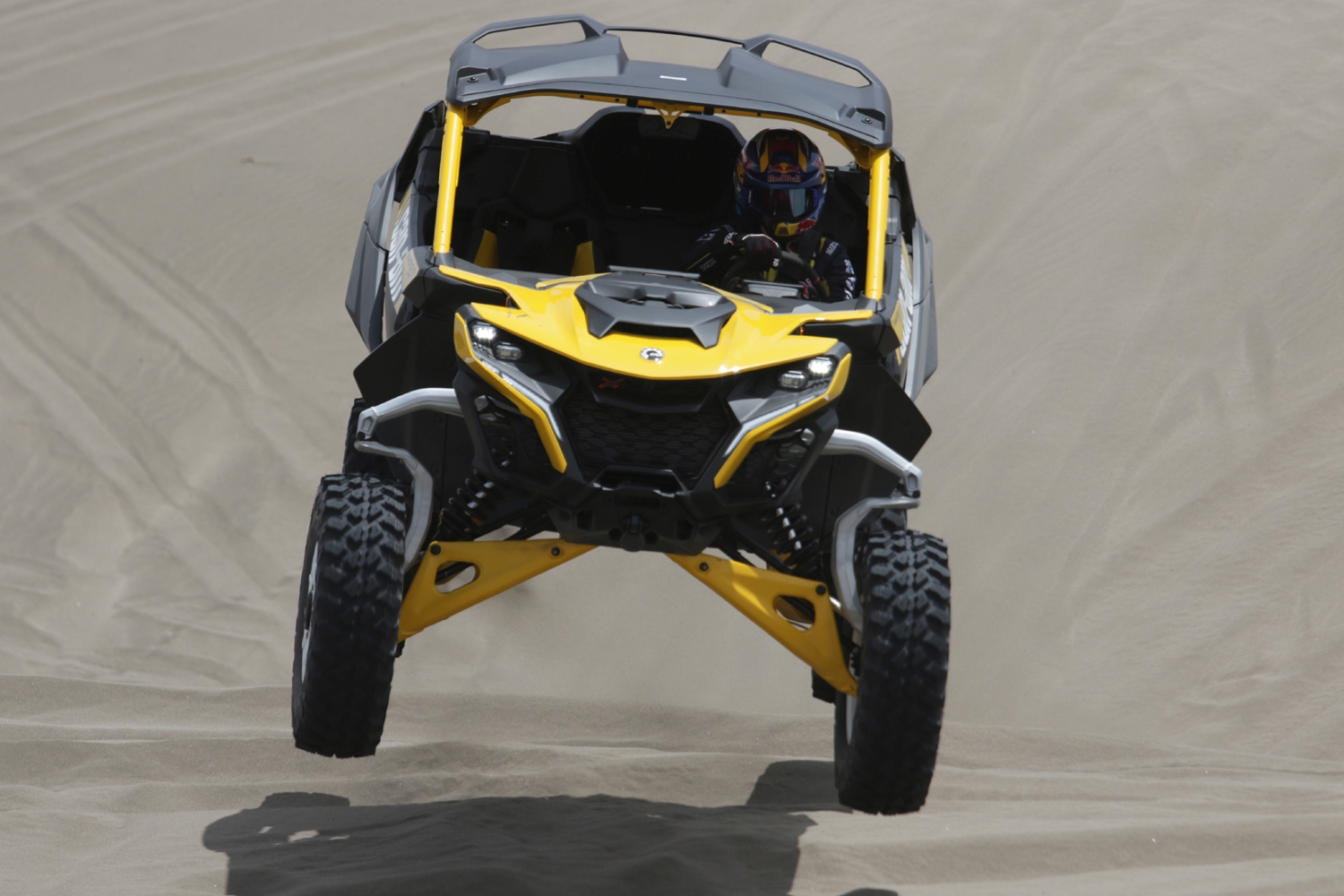 La vaguada costera refrescaba la mañana en el sector El Rancho de Ritoque, 160 kilómetros al oeste de Santiago. Aún con síntomas de agotamiento físico en el cuerpo y rostro, el piloto oficial de Red Bull / Can-Am Factory estuvo puntual para testear el nuevo Maverick R 2024. Vestido con un buzo nuevo y acomodado en la butaca frente al volante, escuchó atentamente las instrucciones del represente de la marca en Chile y gerente comercial de Motor Doo, Rodrigo Ramírez, quien le explicó en pocos minutos los botones y palancas para manejar el nuevo modelo, diferente al que corrió en el Dakar.