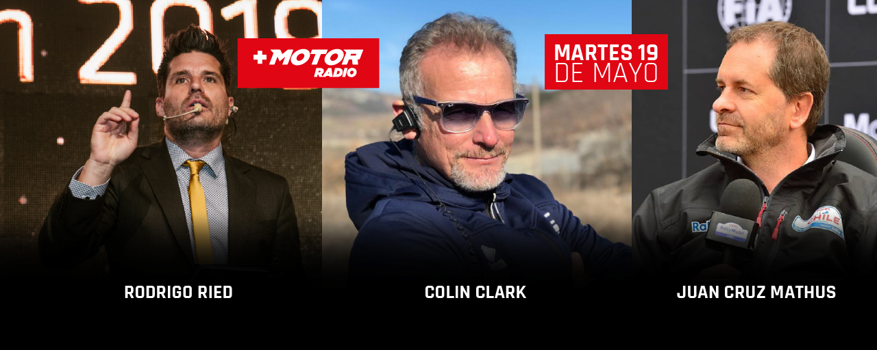 En esta edición de +Motor Radio del día martes 19 de mayo, nos acompañan JUAN CRUZ MATHUS, Press Officef COPEC Rally Chile, RODRIGO REID, periodista Radio Bio Bio y el invitado especial, COLIN CLARK, periodista internacional ligado al MotorSport.