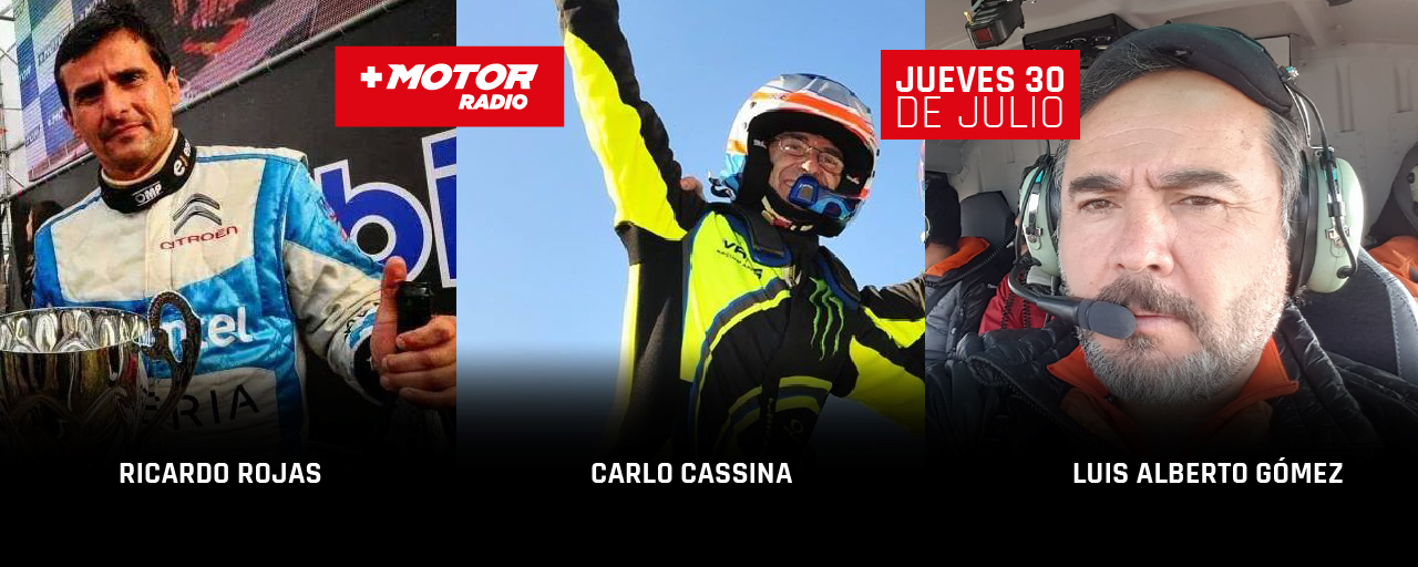 En esta edición de +Motor Radio del día jueves 30 de julio, nos acompañan RICARDO ROJAS, Comisario Deportivo COPEC Rally Chile, LUIS ALBERTO GOMEZ, Piloto “Rastrillo” y Jefe de Telecomunicaciones COPEC RallyMobil™ y el invitado especial CARLOS CASSINA Responsable Road Book COPEC Rally Chile.