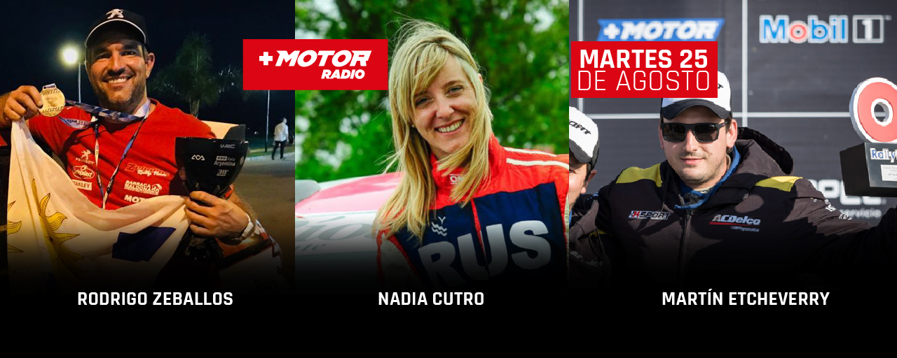 En esta edición de +Motor Radio del día martes 25 de agosto, nos acompañan RODRIGO ZEBALLOS, Piloto uruguayo, ex campeón sudamericano N4, NADIA CUTRO, Piloto Argentina campeona clase Junior y MARTIN ETCHEVERRY – Campeón R2 Lite 2018 COPEC RallyMobil™.