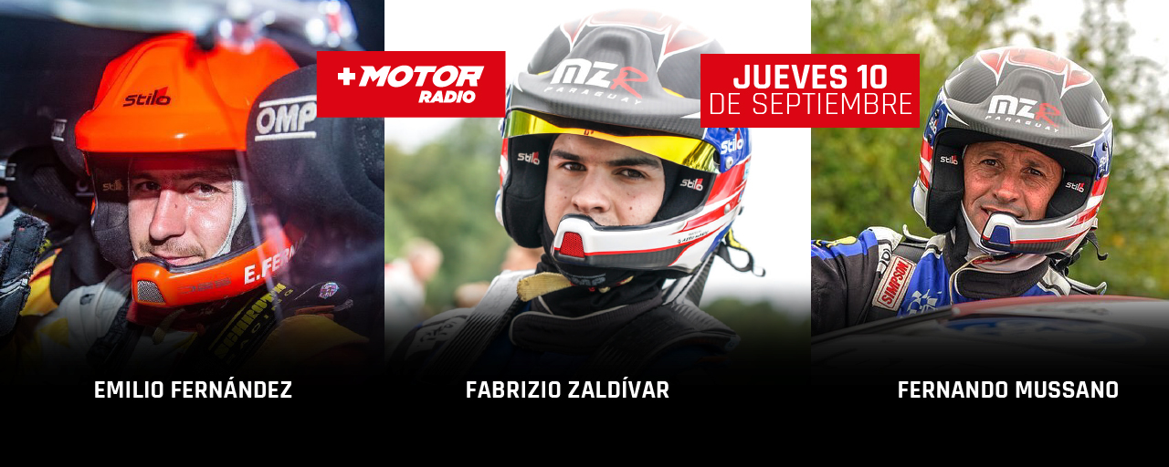 En esta edición de +Motor Radio del día jueves 10 de septiembre, nos acompañan FERNANDO MUSSANO, CoPiloto Fabrizio Zaldivar JWRC, FABRIZIO ZALDIVAR, Piloto JWRC y EMILIO FERNANDEZ Piloto Chileno WRC 3.