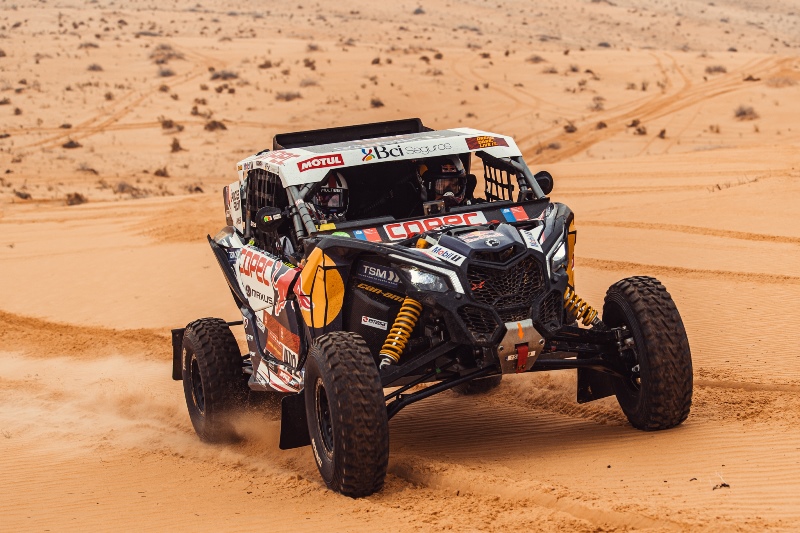 Afectados por la situación, pero tranquilos con su gesto humano y heroico, los chilenos siguen su ataque en la octava jornada del rally entre Sakaka y Neom.
