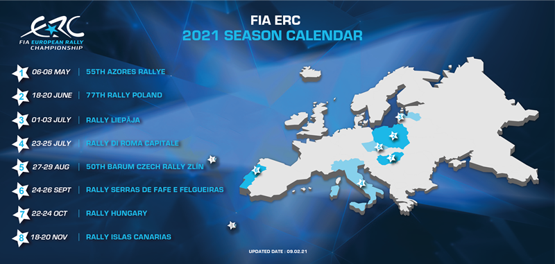 El calendario sufrió recientemente otras modificaciones, por lo que a Azores le siguen las siguientes competencias: Polonia (tierra, 18 al 20 de junio), Letonia (tierra, 1º al 3 de julio), Roma Capitale-Italia (asfalto, 23 al 25 de julio), Barum-República Checa (asfalto, 27 al 29 de agosto), Fafe-Portugal (asfalto, 24 al 26 de septiembre), Hungría (asfalto, 22 al 24 de octubre) e Islas Canarias-España (asfalto, 18 al 20 de noviembre).