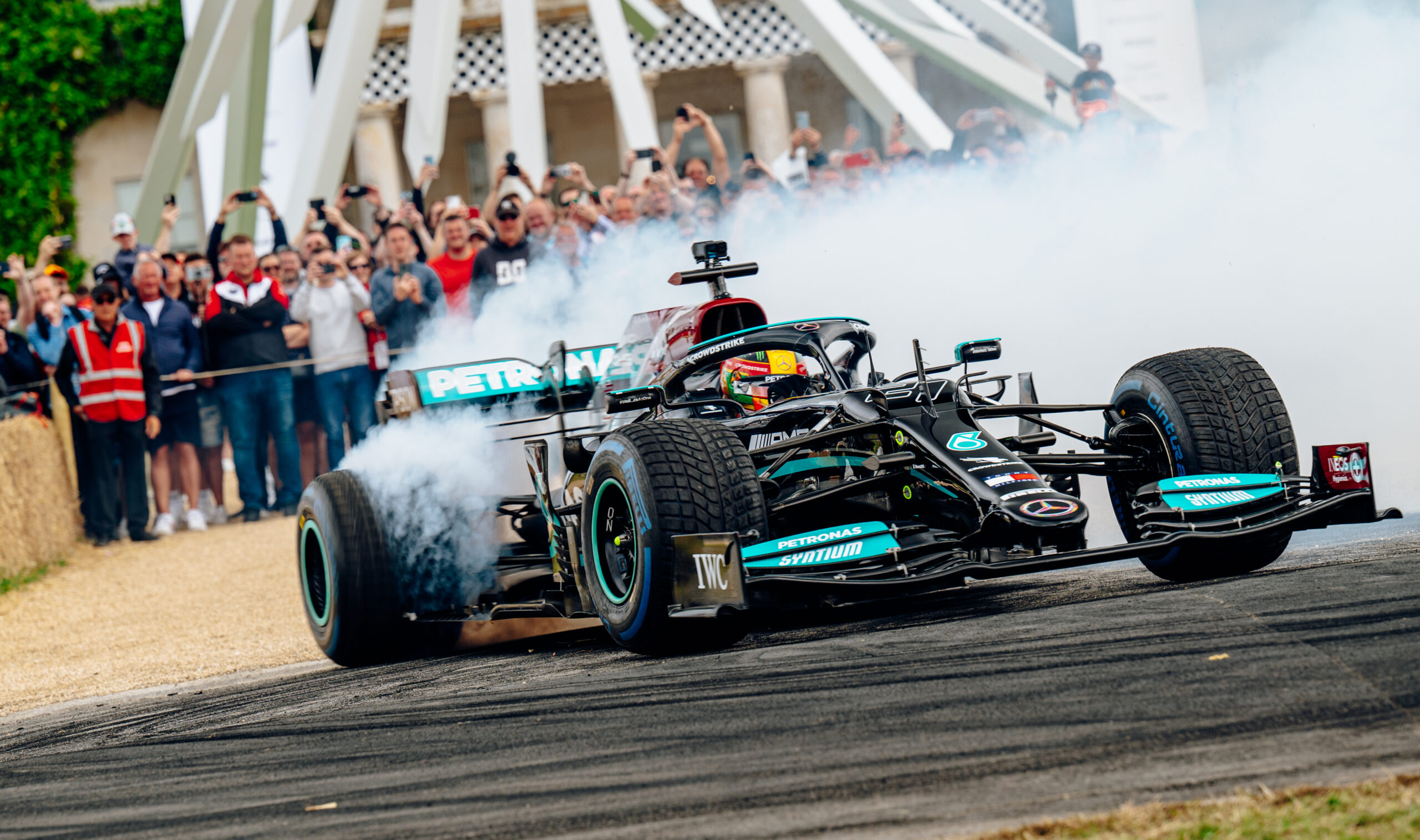 En 2022, Goodwood tuvo el placer de dar la bienvenida a varios equipos y pilotos actuales de Fórmula 1. Sorprendiendo a la multitud, los conductores George Russell, Esteban Gutiérrez y Zhou Guanyu se detuvieron para tomar fotos y autógrafos antes de abordar la colina. El F1 Pit Lane también acogió el auto de Fórmula E Gen3 de Mahindra Racing, así como el innovador auto de carreras de resistencia impulsado por hidrógeno de MissionH24, el LMPH2G.
