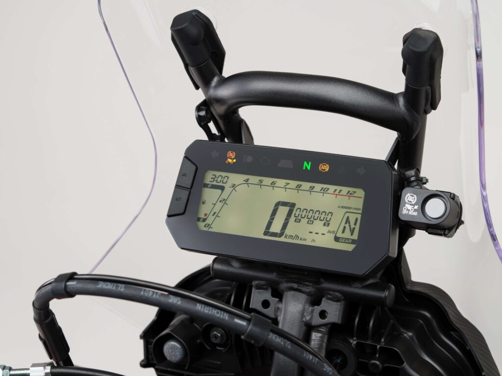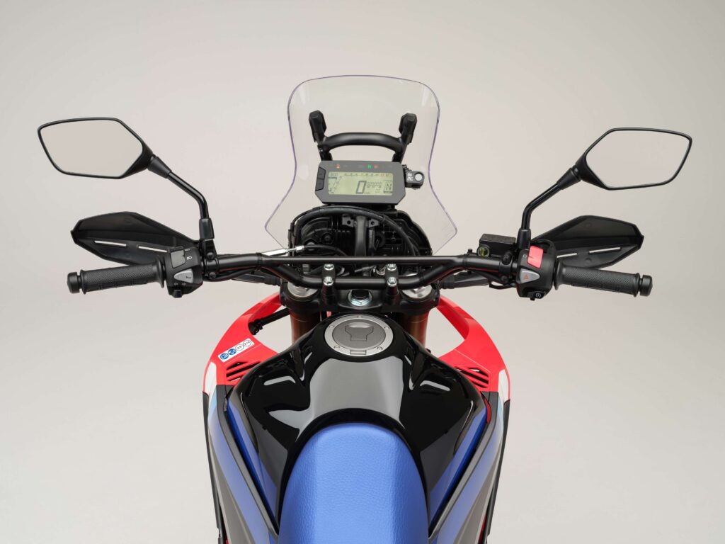 La carrocería estilizada y protectora, el gran depósito de 12,8L (más de 400 km de autonomía), el asiento amplio sobre goma y el cuadro de instrumentos LCD de alta visibilidad hacen de la CRF300 Rally una moto lista para largas travesías.