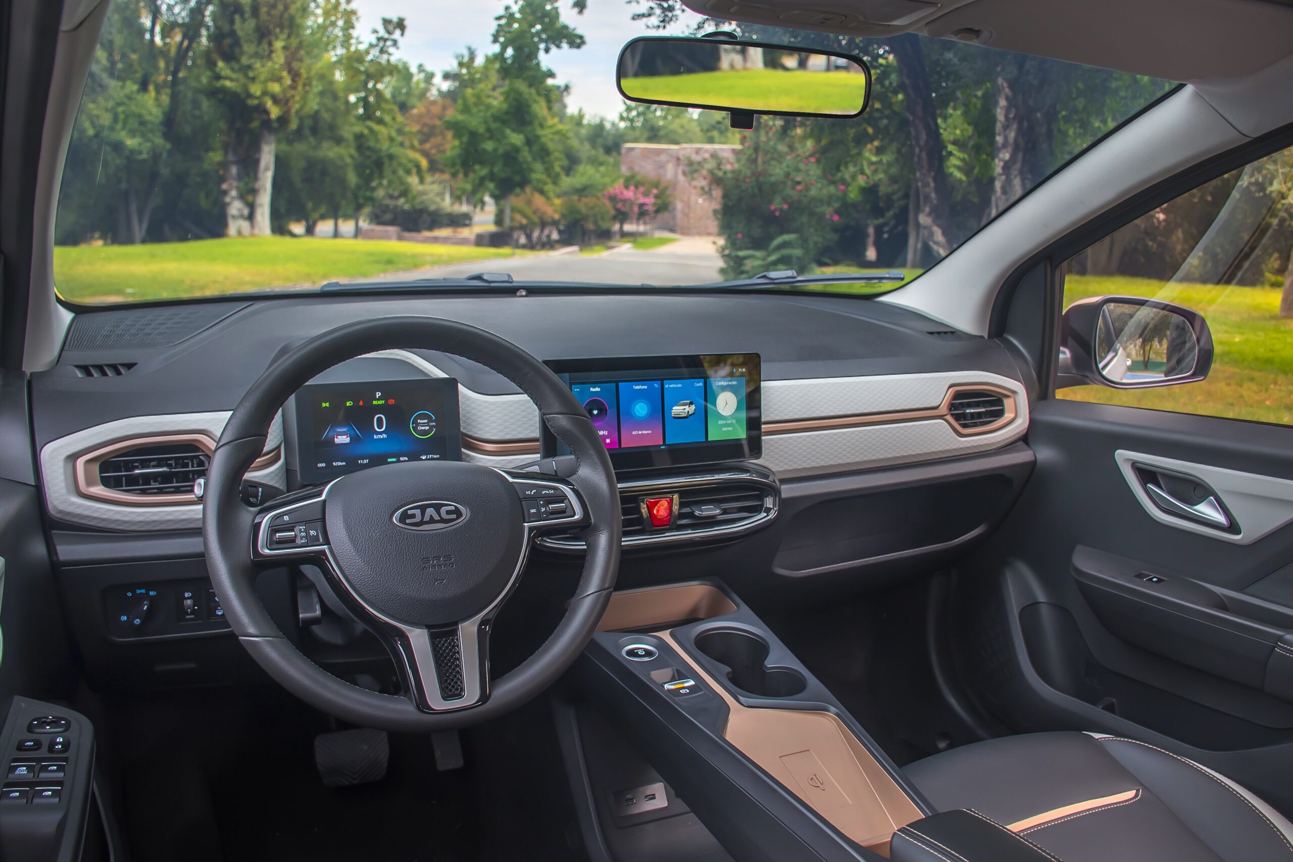 En lo que se refiere a su equipamiento, el JAC e-JS1 incorpora aire acondicionado, pantalla central LCD con control multimedia y conectividad para Apple CarPlay y Android auto; panel de instrumentos LCD de alta definición, volante multifunción forrado en cuero, palanca de cambios en el volante para liberar espacio en la consola central y espejos laterales con ajuste eléctrico y calefacción. En materia de seguridad incluye doble airbag frontal, control crucero, Auto Hold, monitor de presión de neumáticos (TPMS), luces led y diurnas, anclajes Isofix, frenos de disco en las cuatro ruedas con ABS y EBD, control de estabilidad (ESC), sensores y cámara de retroceso, además del sistema de alerta para peatones, entre otros.
