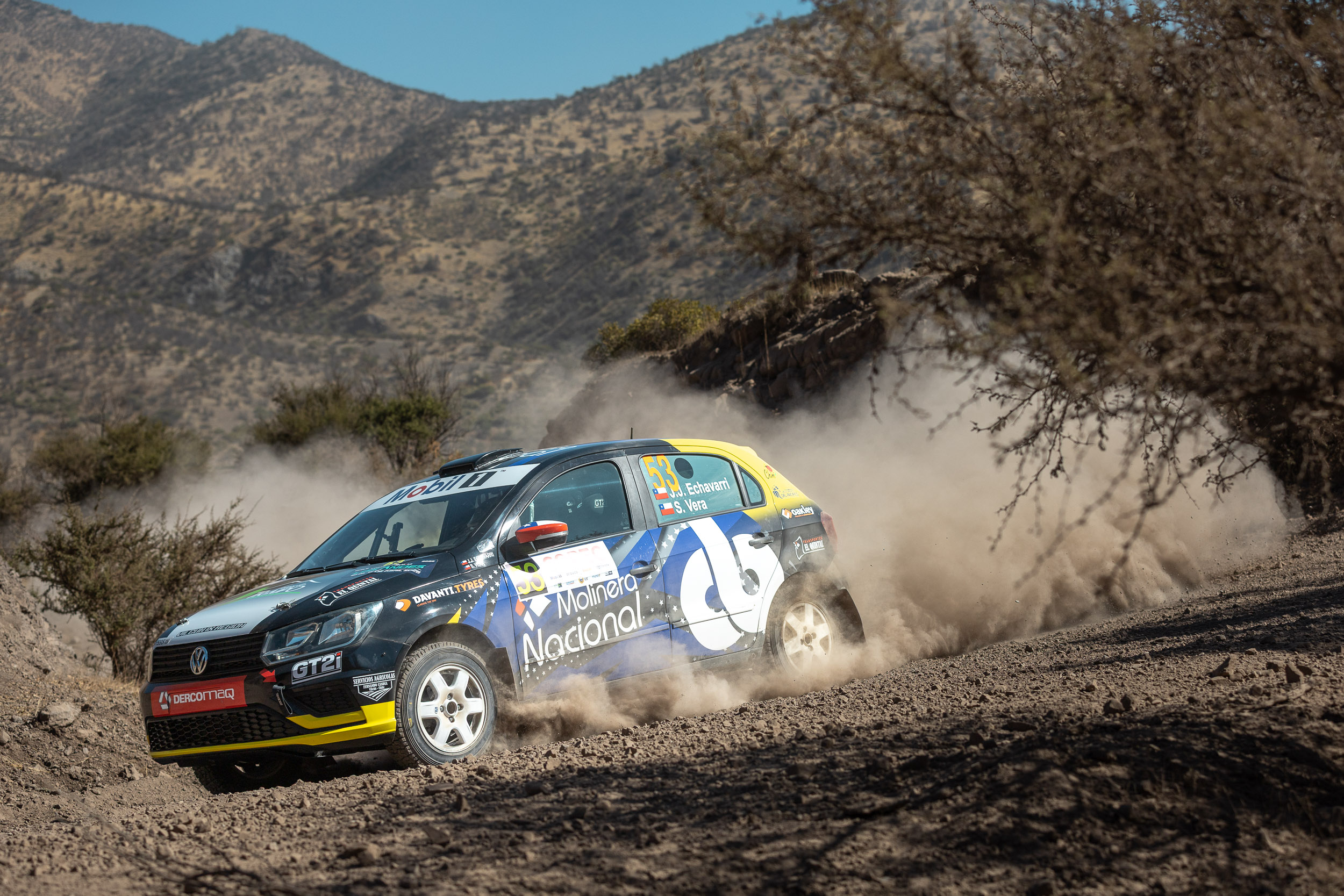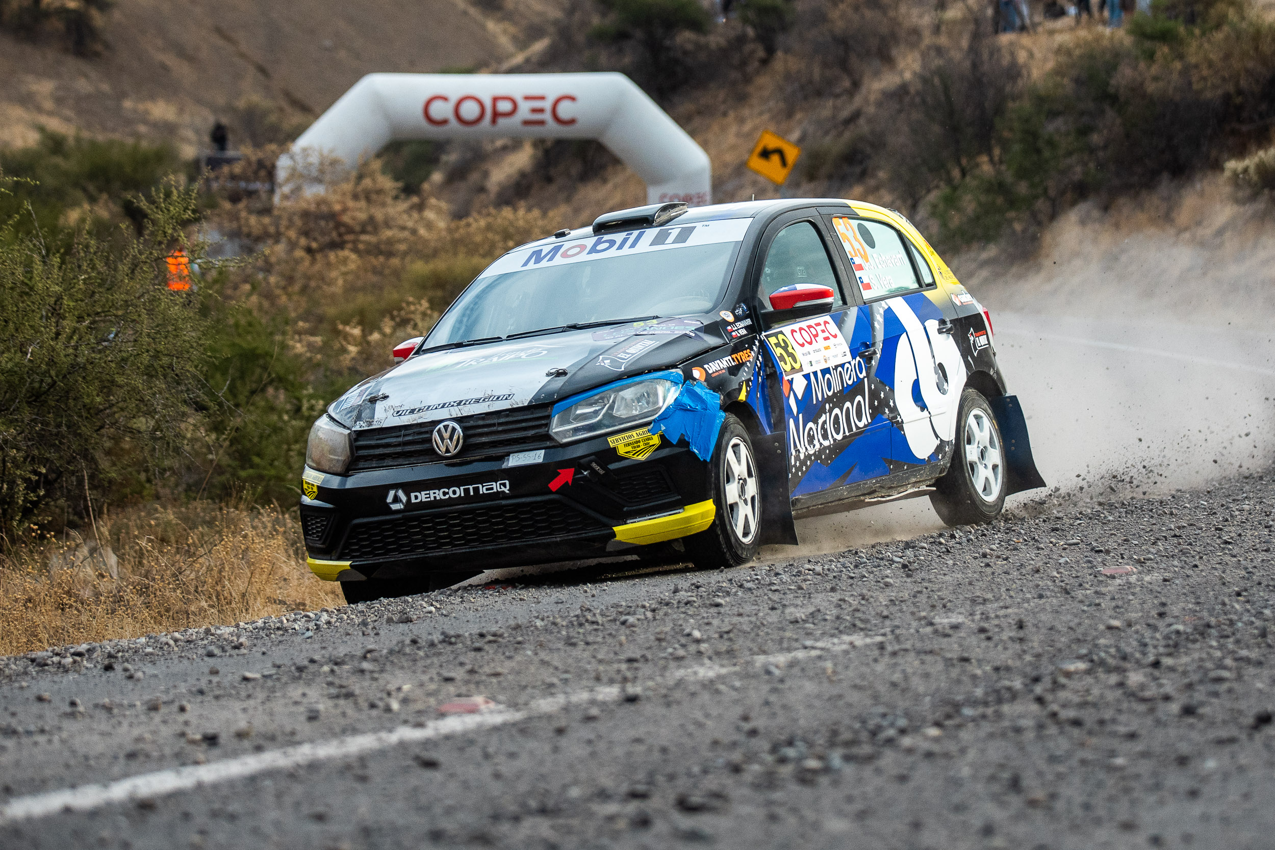 El momento más col del fin de semana en el Rally de Los Andes, segunda fecha válida por el Copec RallyMobil 2026, la proporcionó el VW Gol de Juan José Echavarri y su navegante Sebastián Vera literalmente colgado de un poste en el tramo 3 disputado en el sector El Chacay.