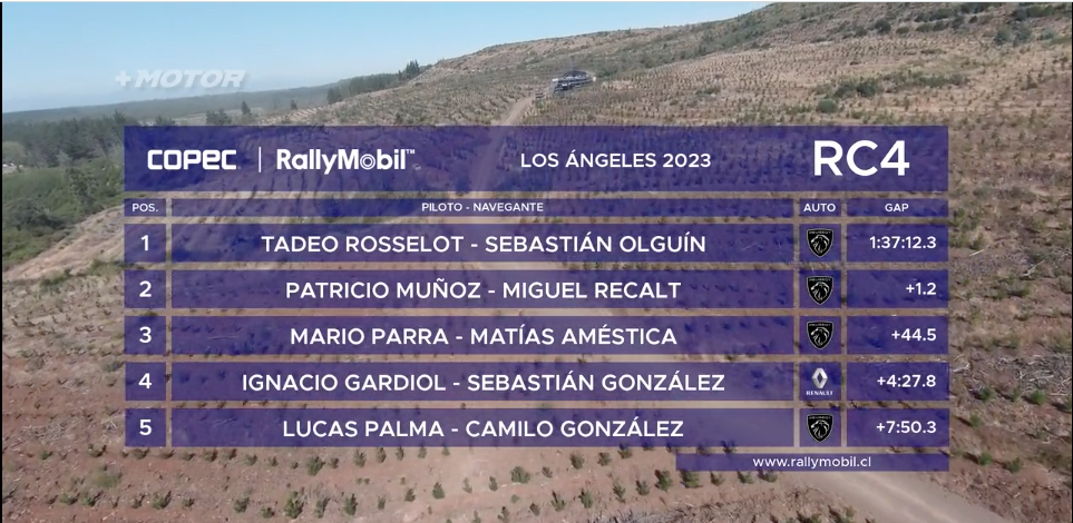 Finalmente Tadeo Rosselot ganó la Power Stage y se quedó con la victoria en el GP de Los Ángeles, sacando una estrecha diferencia de 1.2 segundos al perseguidor Patricio Muñoz, que se llevó el segundo lugar, Mario Parra terminó todas las carreras del domingo en el tercer lugar y subió al podio en el mismo puesto. Tadeo Rosselot nos adelantó el deseo de teñir de rojo a su estrenado Peugeot 208 Rally4, colores característicos de la flota histórica del Team Rosselot.