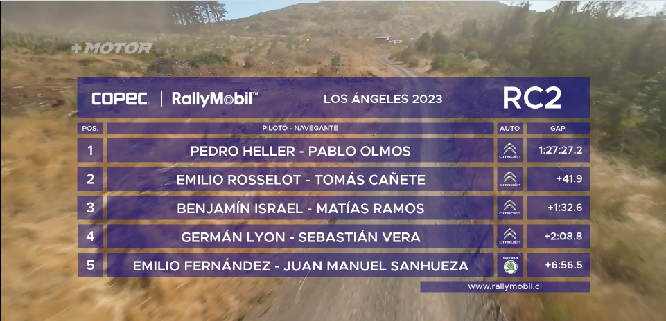 1- Tadeo Rosselot/ Sebastián Olguín: 1h37m12s. Rosselot Rally Team