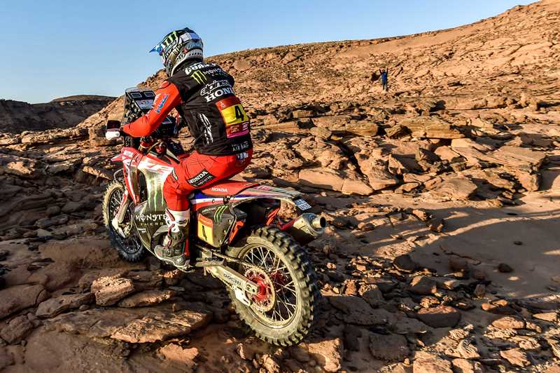“Fue una jornada con un poco de todo: arena, piedras y partes muy rápidas. El objetivo era avanzar en la clasificación general y lo conseguimos después de abrir pista durante un largo rato. Me siento muy cómodo con la moto y estoy muy motivado para seguir así”, dijo Cornejo, que se encuentra a 9m24s de Howes.