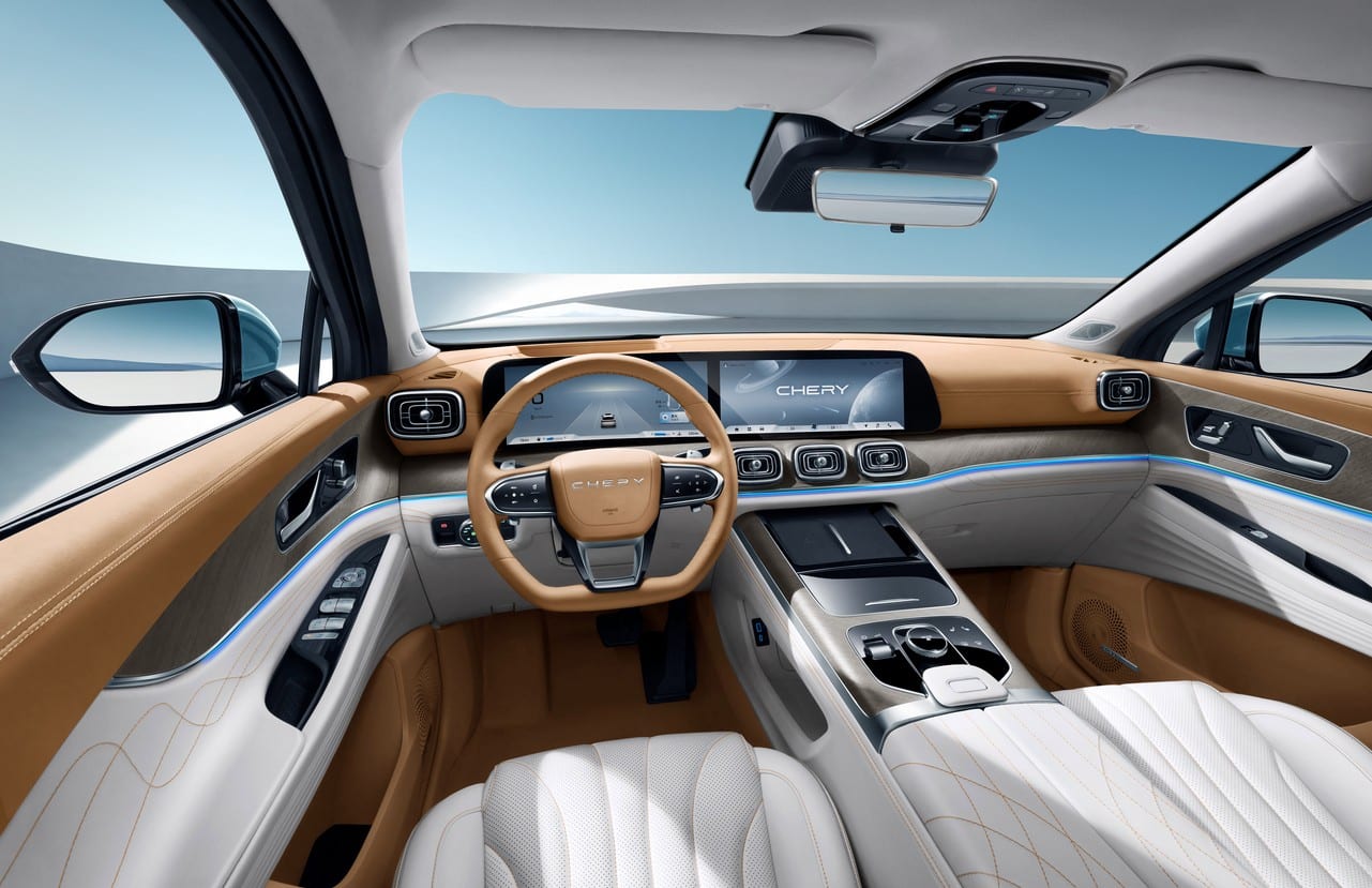 En el exterior del Tiggo 9 se respira un aire moderno con detalles de vanguardia como manillas de puertas retráctiles, llantas de 19 o 20 pulgadas y un minimalismo presente incluso en un rediseñado emblema de la marca que da a entender las aspiraciones de este SUV de importantes dimensiones.