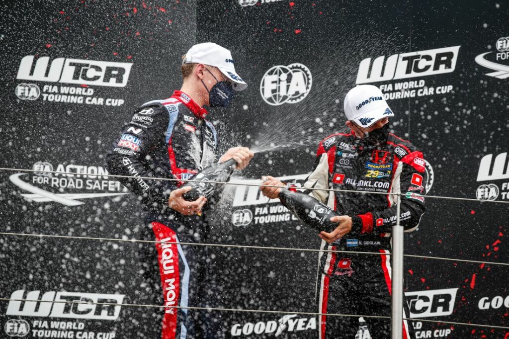 Con una maniobra de sobrepaso al Lynk & Co. 03 de Yvan Muller en la larga recta Dottinger Hohe, el portugués del Honda Civic Type-R volvió a lo más alto del podio en esta categoría.