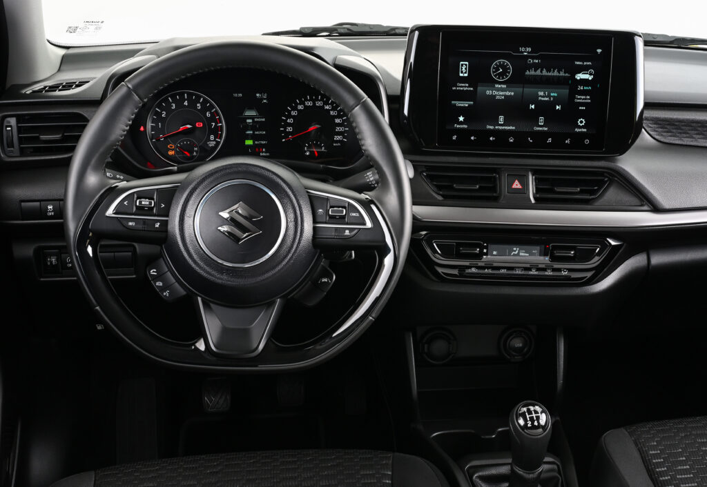 El diseño interior del New Swift Hybrid también fue optimizado, orientándolo esta vez hacia el conductor e incorporando un nuevo panel frontal que tiene una sección flotante en el centro para darle mayor sensación de amplitud y modernidad.