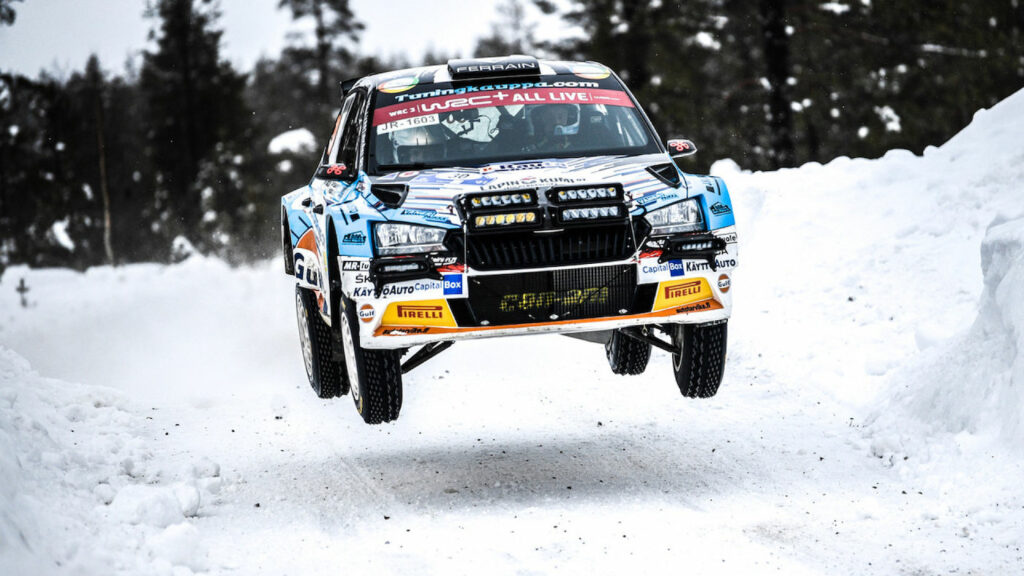 En su país, Eerik Pietarinen y Mikko Heikkilä se debaten por el tercer escalón del podio, dejando quinto a Mattias Ekström. Todos ellos conducen el vehículo checo, al igual que el paraguayo Fabrizio Zaldívar, tercer volante de Toksport que perdió tiempo y cayó de noveno a 17º cuando perdió adherencia por la nieve fina que caía a su paso y fue a parar, como tantos, a uno de los consistentes taludes que delimitan la carretera.