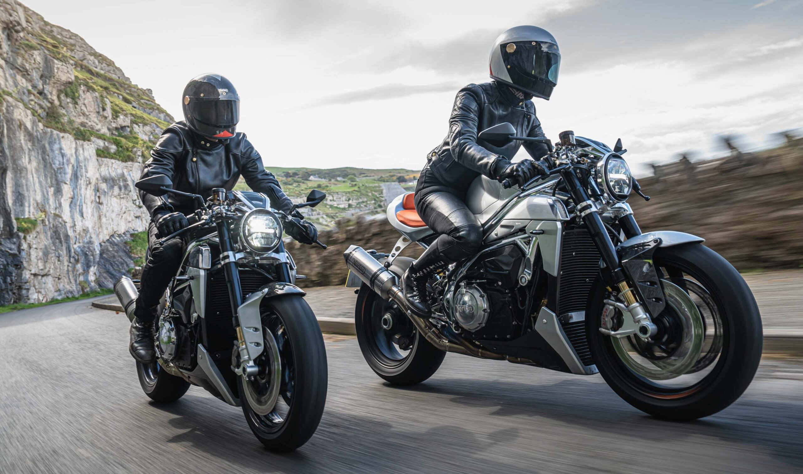 Se incluyen una palanca de cambios rápida y un sistema automático de luces intermitentes, suspensión delantera y trasera ajustable Öhlins, frenos Brembo, horquillas sólidas de aluminio de grado aeroespacial, un sofisticado control de tracción sensible al ángulo de inclinación y tres modos de motor (mojado, carretera y deportivo). en esta motocicleta de fabricación británica.