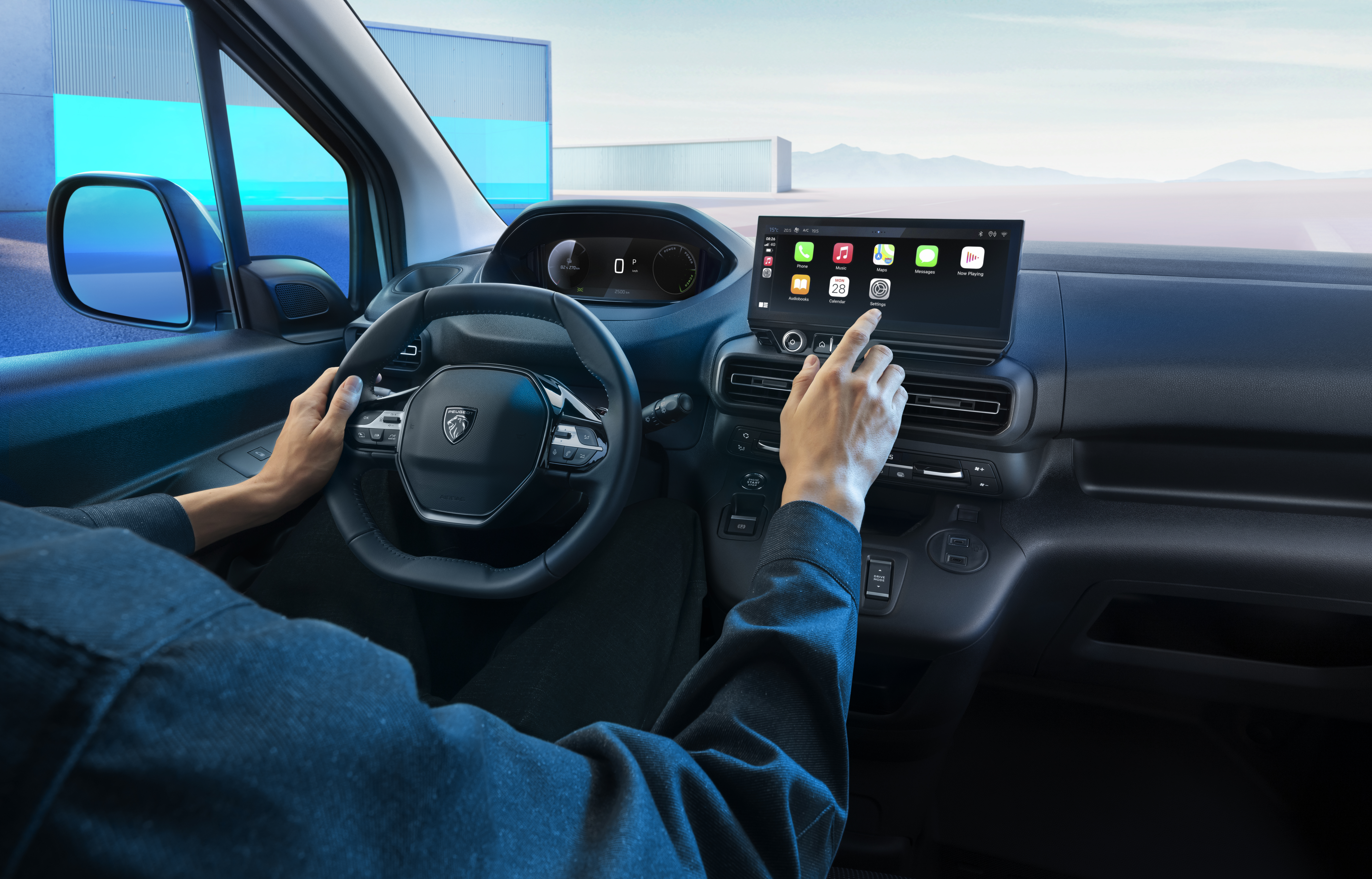 El interior del Partner ha sido modernizado para ofrecer una mejor funcionalidad y experiencia al usuario. Ahora incluye una pantalla táctil de 10” con conectividad inalámbrica y un panel digital monocromático, que sustituye al tradicional panel analógico. Ambas versiones del Partner vienen equipadas con el sistema Peugeot i-Cockpit, aire acondicionado y cierre centralizado de puertas con mando a distancia.