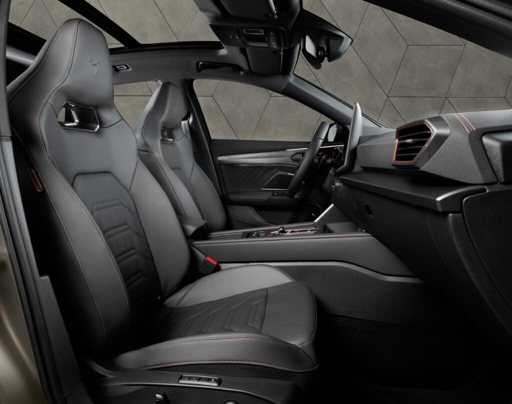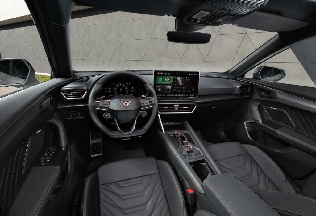 El volante CUPRA, con levas y botones satélite de encendido o Modo CUPRA según versión, aumenta el control y mejora la experiencia de conducción, mientras los asientos tipo Bucket ofrecen confort y estabilidad. Todo ello, unido a la arquitectura digital con un Digital Cockpit de 10,25” y una pantalla de infoentretenimiento de 12,9”, y a la nueva selección de materiales, refuerza las credenciales deportivas y eleva la calidad percibida de los nuevos CUPRA León y CUPRA Formentor.