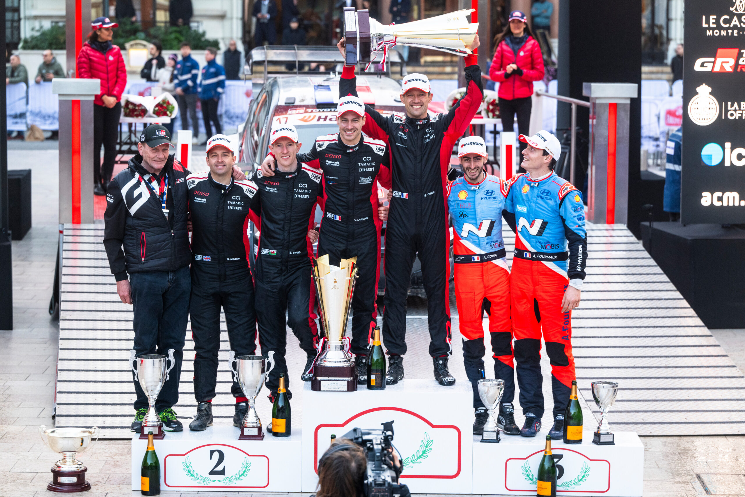 El decisivo tramo final del domingo amenazaba con cambiar las tornas. Ogier y su compañero de equipo en Toyota GAZOO Racing, Elfyn Evans, optaron por llevar cuatro neumáticos Hankook con clavos y sólo dos superblandos, un planteamiento que resultó eficaz en las carreteras heladas de Avançon – Notre-Dame du Laus, pero que les dejó vulnerables en el penúltimo tramo, más seco, en Digne-les-Bains / Chaudon-Norante. Allí, Adrien Fourmaux brilló con una configuración de neumáticos lisos, superando a ambos Toyota por 23,9 y 17,8 segundos respectivamente y amenazando momentáneamente con alterar el orden del podio.