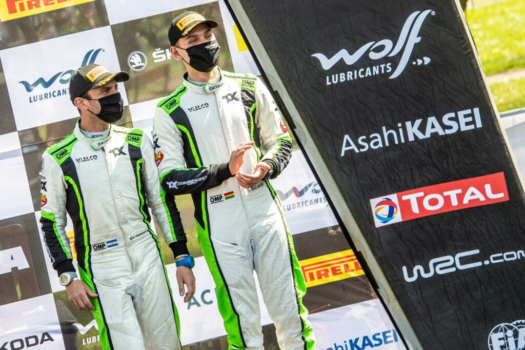 El incidente de Gryazin promovió al podio a los sudamericanos Marco Bulacia y Marcelo Der Ohanessian. El boliviano acabó tercero en un Škoda Fabia Rally2 Evo, sucedido como todo el fin de semana por el italiano Enrico Brazzoli y por su colega de Toksport, Andreas Mikkelsen, que sigue como líder en los puntos.