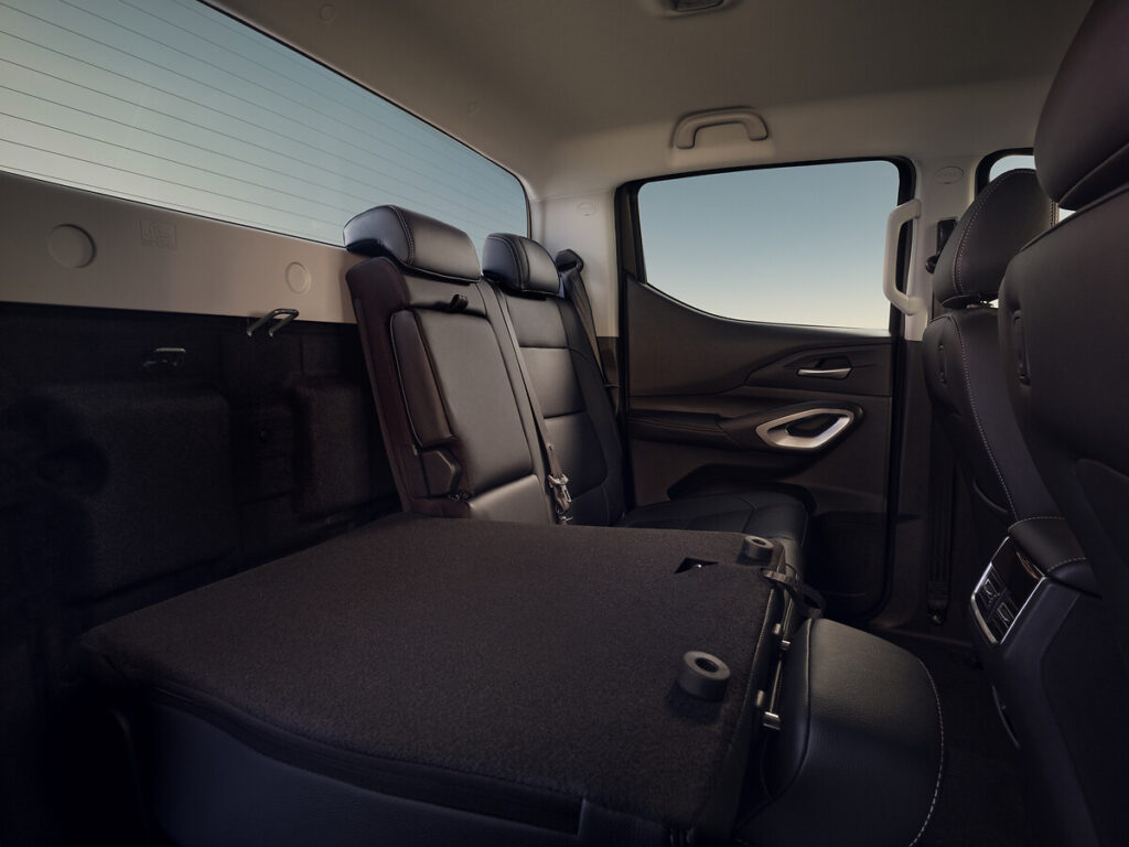 Su presencia robusta también se refleja en sus dimensiones:  mide 5.330 mm de largo, 1.925 mm de ancho y 1.897 mm de alto. La zona de carga mide 1.630 mm de largo, 1.600 mm de ancho y tiene una profundidad de 500 mm entregando una capacidad de carga de 1 tonelada.