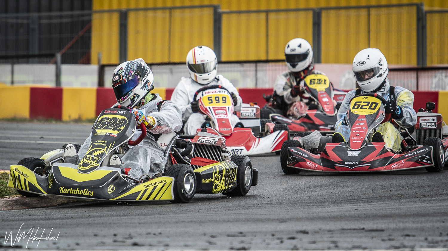 kart en la pista húmeda de 1.700 metros, corriendo una veloz prueba con rivales como Rodrigo
