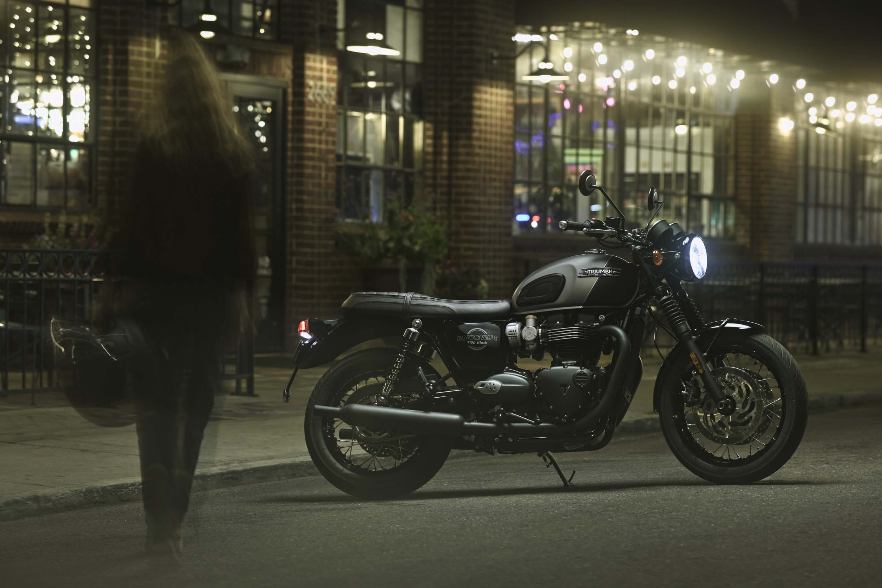 Las variantes T100, T120 y T120 Black llaman la atención con nuevos esquemas de pintura acabados a mano y detalles en las líneas laterales, así como un nuevo gráfico circular en los paneles laterales, que enmarca el logotipo de Bonneville en oro o plata.